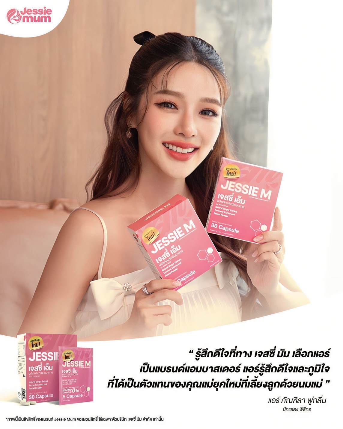 ก้าวสู่ปีที่ 7 Jessie Mum ผลิตภัณฑ์เสริมอาหารสำหรับแม่และเด็กแบรนด์ไทยรายแรก ที่เพิ่งไปคว้ารางวัลแห่งปี HOFS Award 2023 (Hall Of Fame Singapore Award) เวทีใหญ่ระดับเอเชียที่ประเทศสิงคโปร์ ในฐานะแบรนด์สินค้าแม่และเด็กที่ได้รับความไว้วางใจจากผู้บริโภคมากมาย ตอนนี้ยังได้คุณ "แอร์-ภัณฑิลา ฟูกลิ่น" นักแสดงและพิธีกรสาวที่เพิ่งขึ้นแท่นเป็นคุณแม่ป้ายแดง ตอบรับเข้ามาเป็นแบรนด์แอมบาสเดอร์ เพื่อเป็นตัวแทนของคุณแม่ที่อ่อนโยน